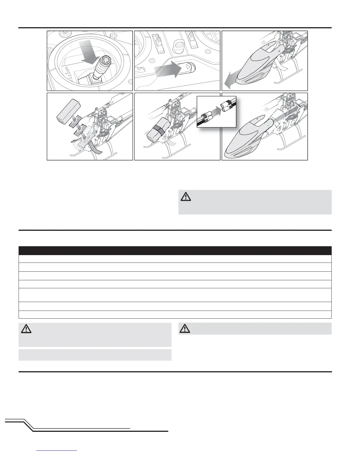 6. Install the fl ight battery on the helicopter frame. Secure the fl ight battery with a