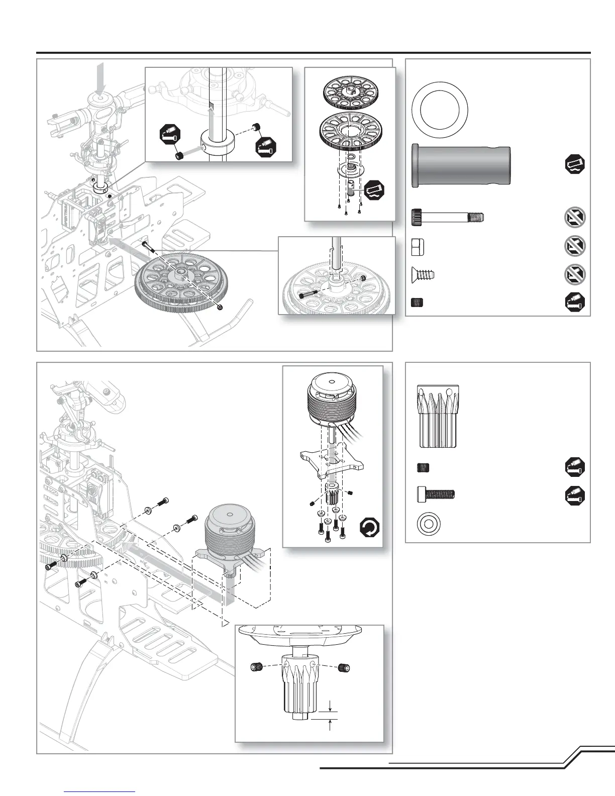 Blade 550X - Frame Assembly Continuation; Step F5: Main Rotor Hub and Hub Assembly; Step F6: Pinion Gear Mounting