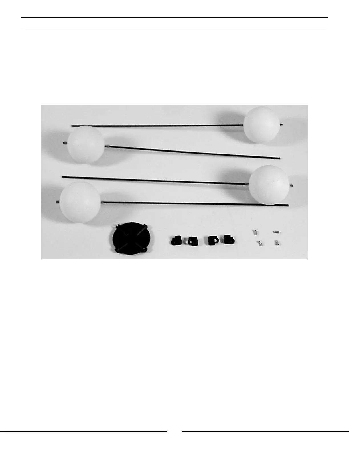 • Locate the four training gear rod to landing skid attachments and four screws. Note that there are two each