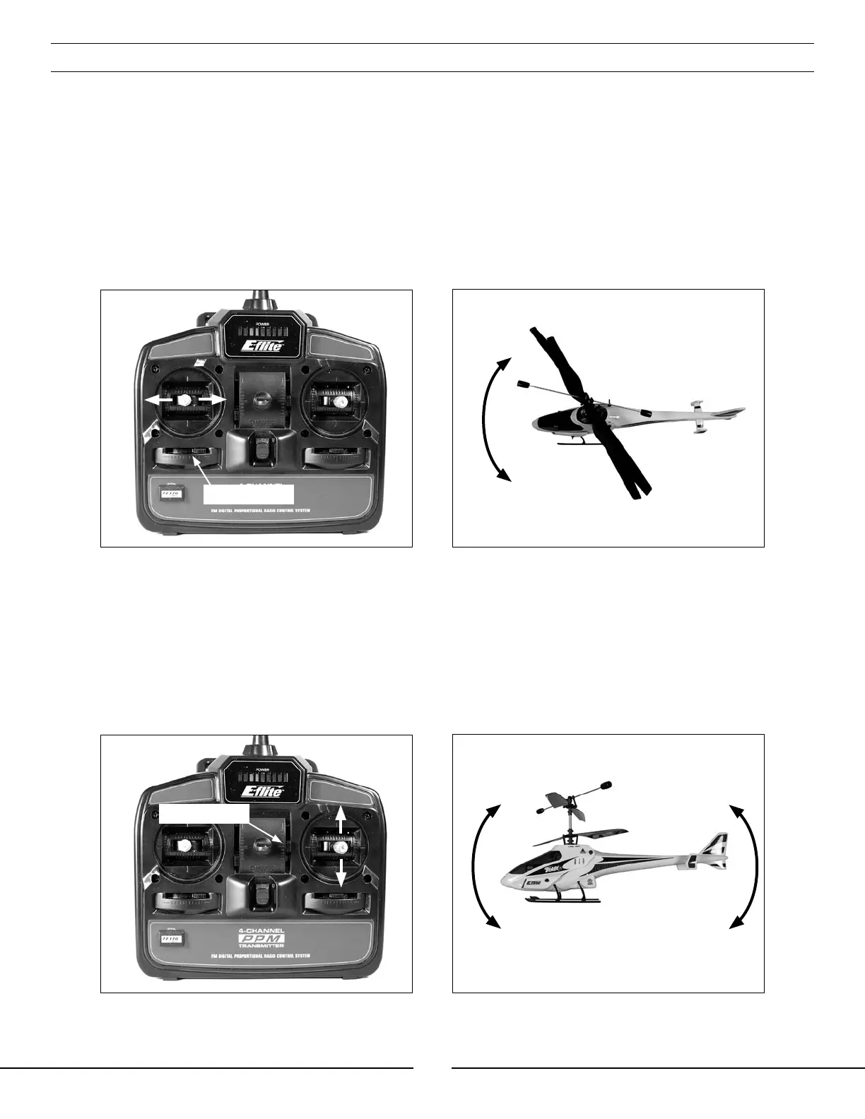nose of the helicopter downward, allowing the helicopter to be flown forward. Pulling the stick backward will pitch