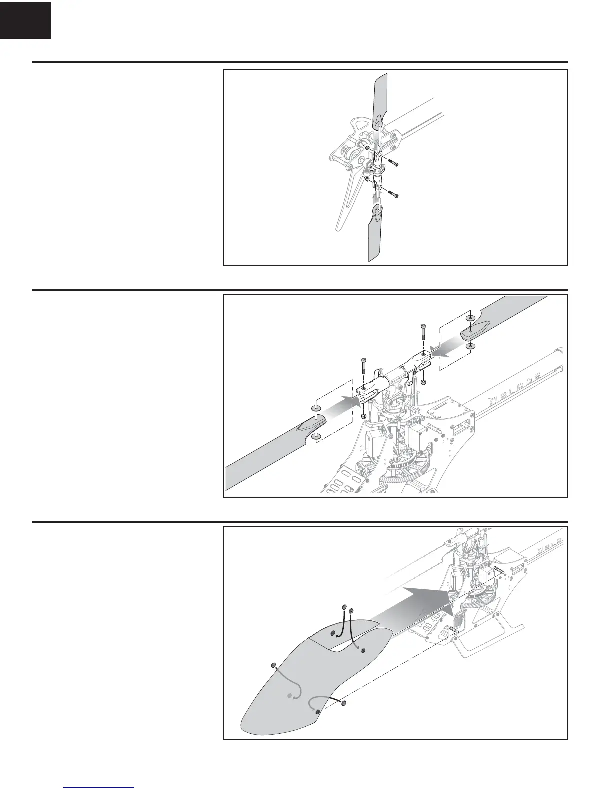 Install the tail blades in the orientation shown using