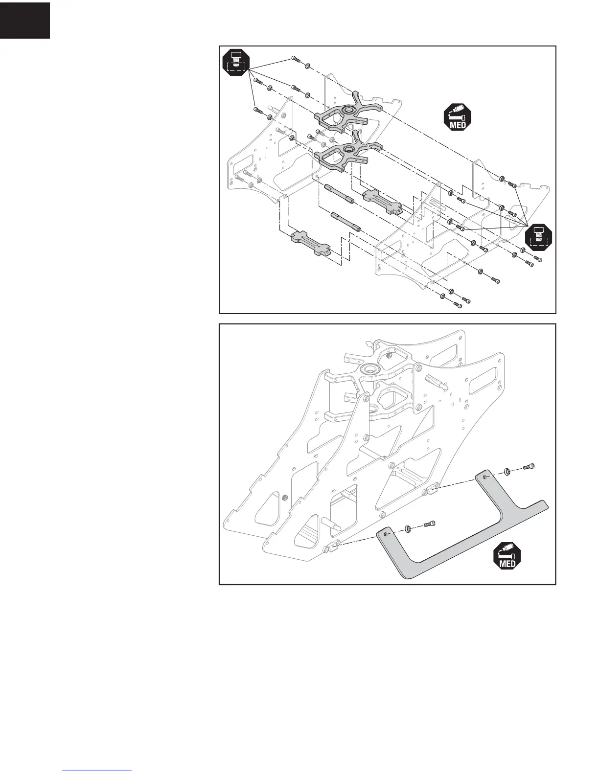 5. Attach two landing gear mounts and two frame