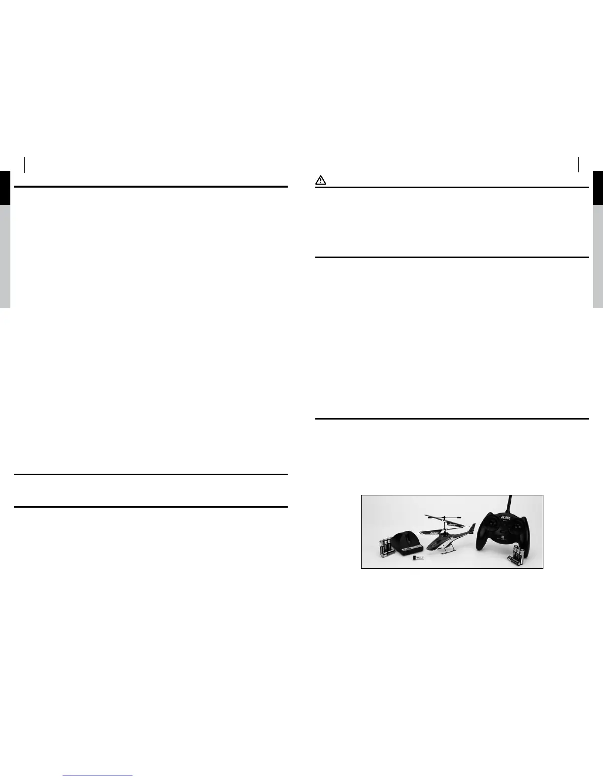 An RC helicopter is not a toy! If misused, it can cause serious bodily harm and damage to property. Fly