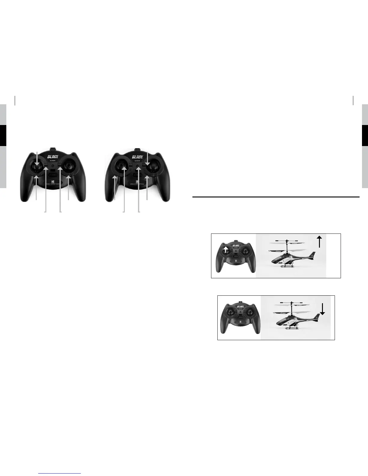 ben Sie den Knüppel nach oben, erhöht sich die Drehzahl der Hauptrotorblätter, und das Modell hebt ab.
