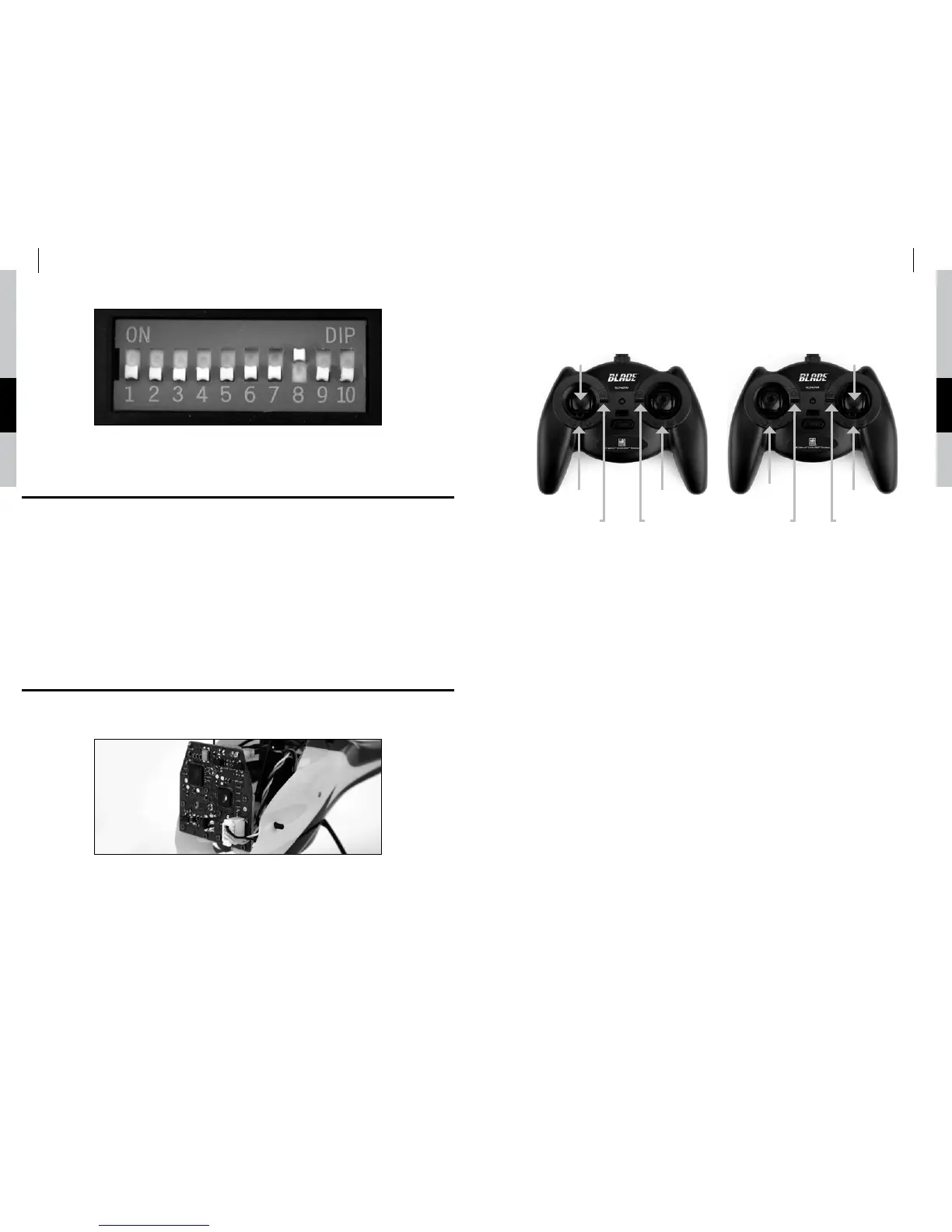 Si vous décidez d'utiliser un émetteur E-flite LP5DSM, positionnez vos interrupteurs d'inversion de canal