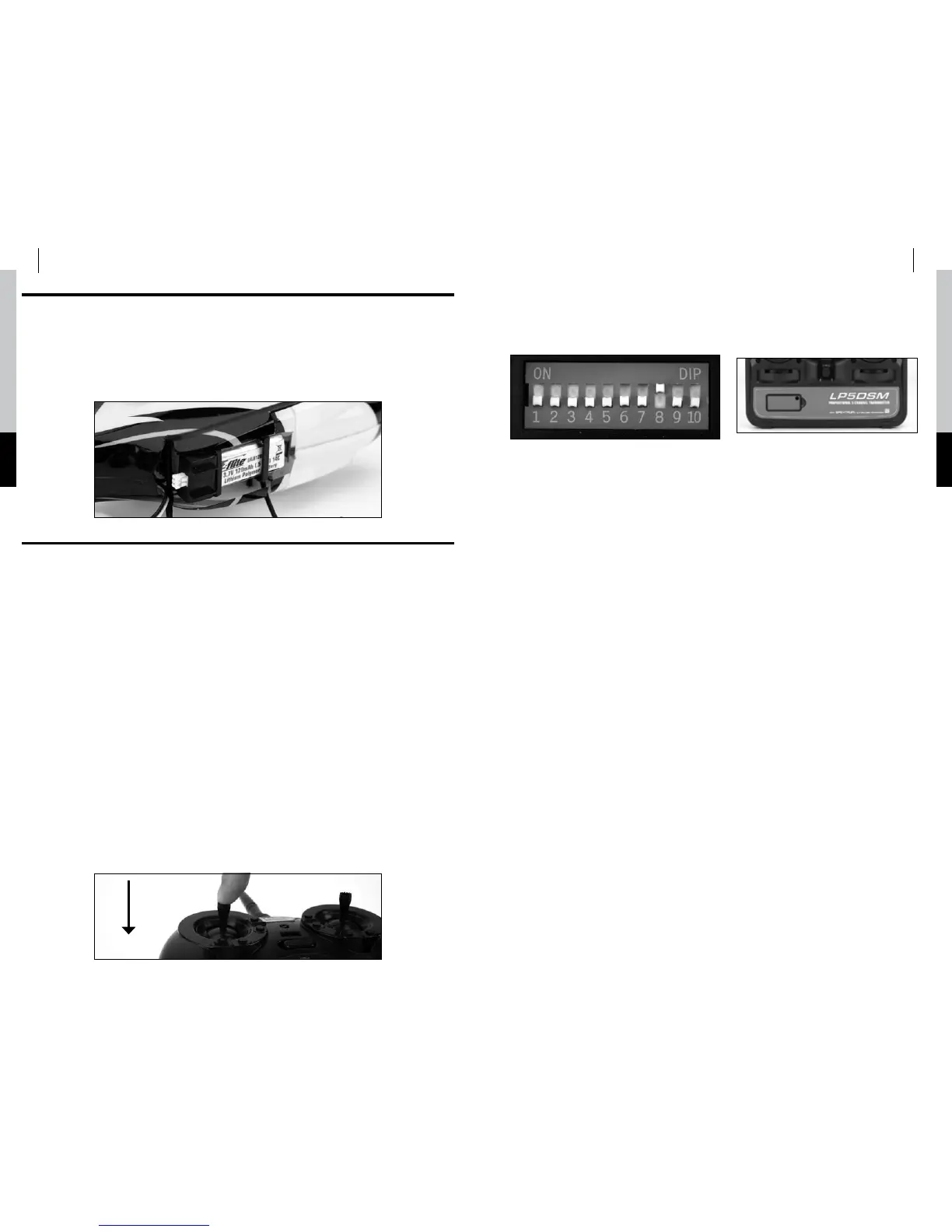 Se si decide di usare un E-flite LP5DSM, bisogna posizione gli interruttori dip di inversione dei canali nel