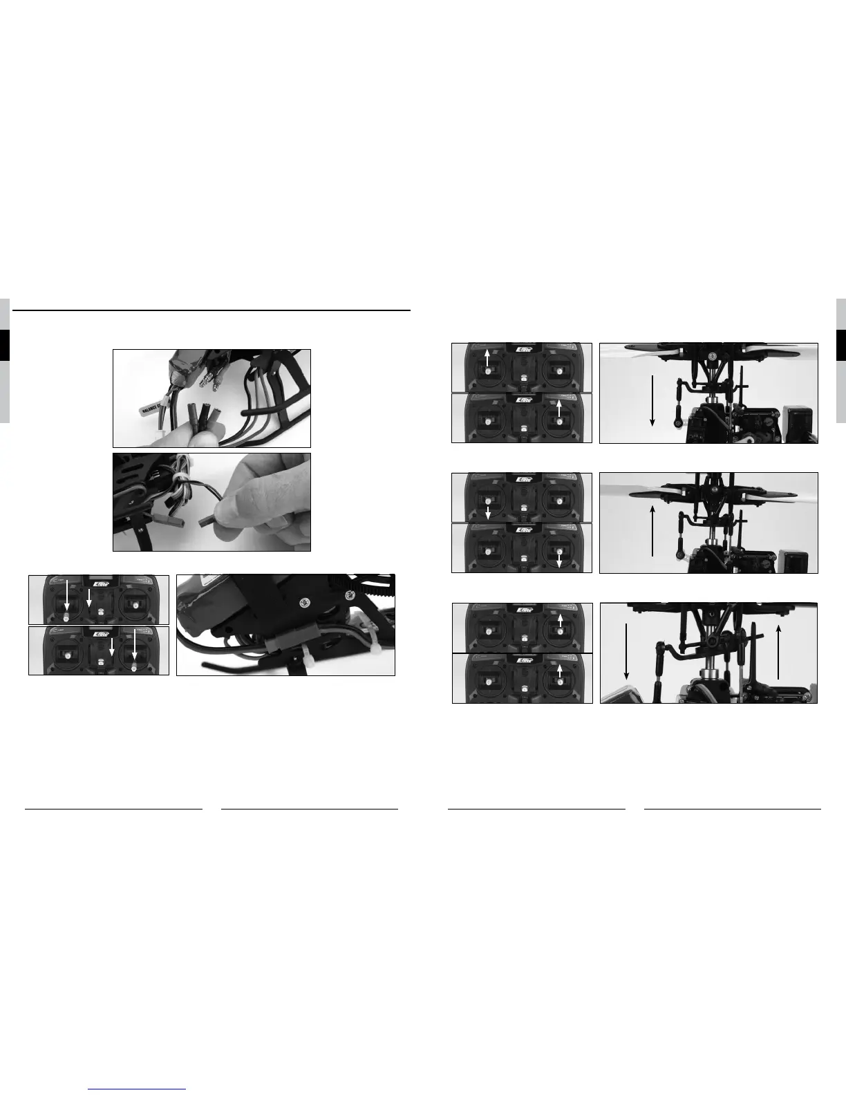 rechten Knüppel nach vorne bewegen, sollte sich die Taumelscheibe auch nach vorne bewegen.