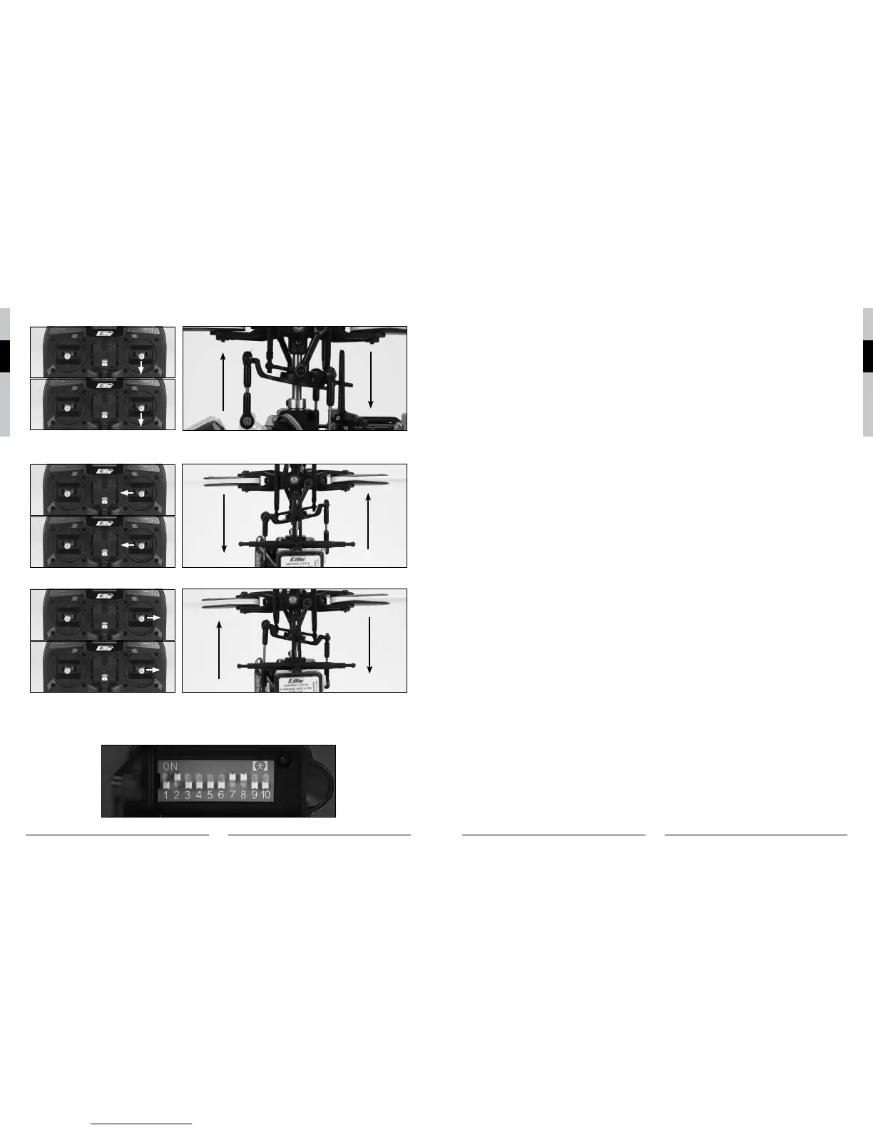 Helikopters zu überprüfen. Bewegen Sie den Stick nach links, sollte sich die Taumelscheibe ebenfalls nach links bewegen.