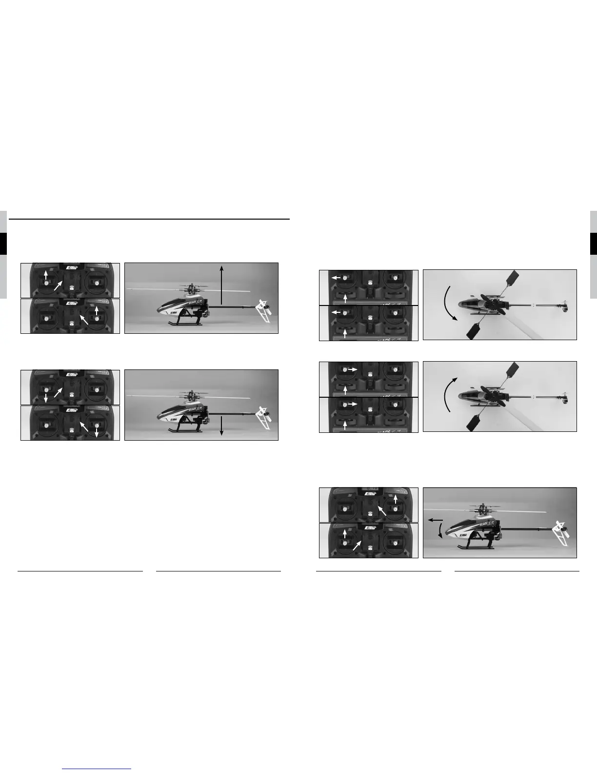 Bewegen Sie den Stick nach rechts, wird die Nase des Helikopters nach rechts drehen. Diese Drehung wird durch die Erhö-