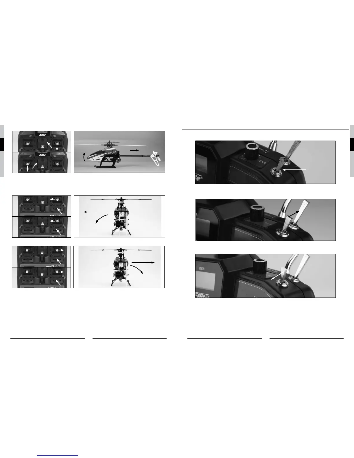 Die Höhenruder / Nick Trimmung kann dazu verwendet um den Helikopter im Schwebeflug zu stabilisieren. Driftet der