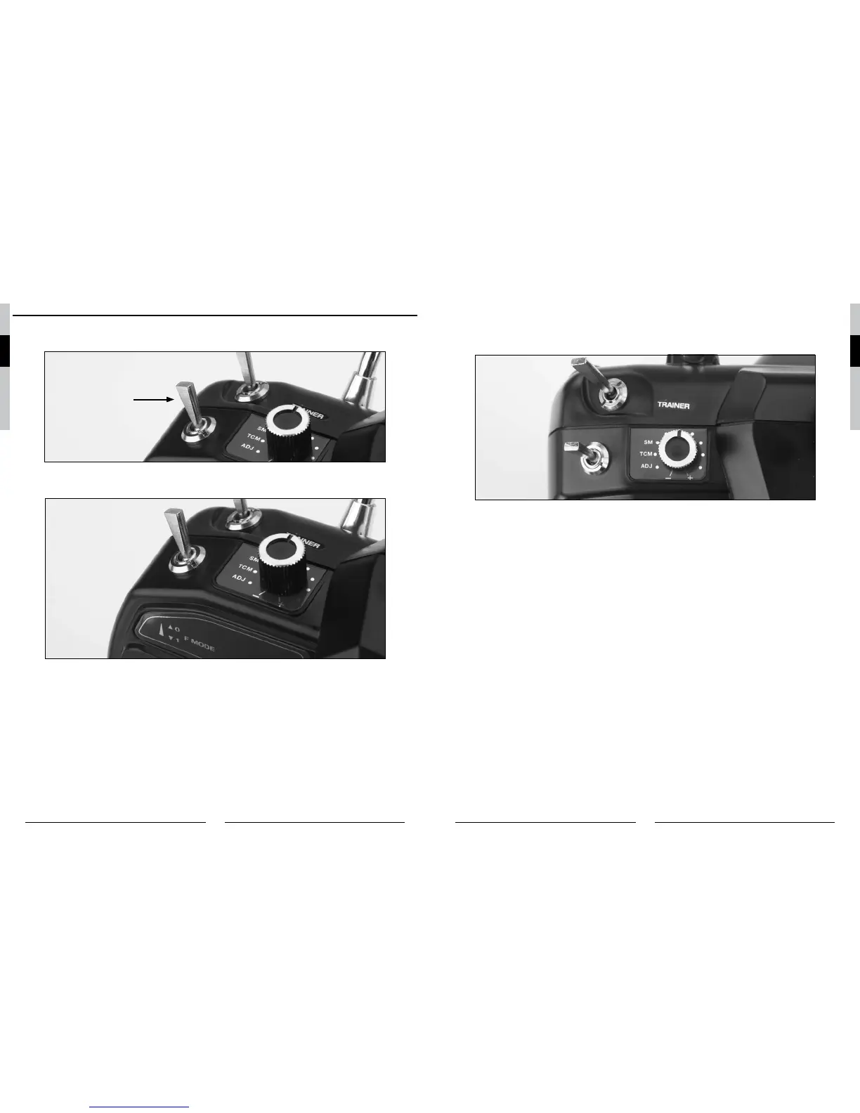 Mit dem SM TCM ADJ Drehknopf der sich auf der vorderen linken Seite des Senders befindet, können Sie im Stunt Mode die