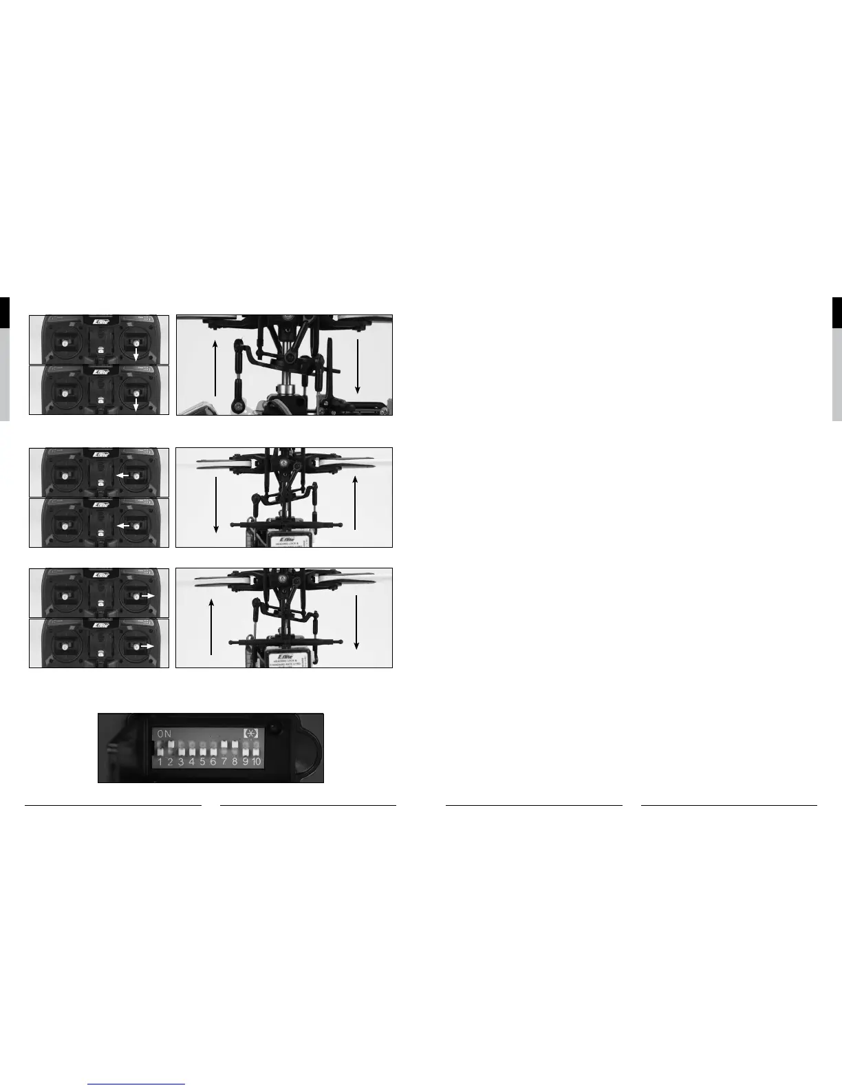 Dip Switch 4: Up – Channel 4/Rudder channel reversed Down – Channel 4/Rudder channel normal