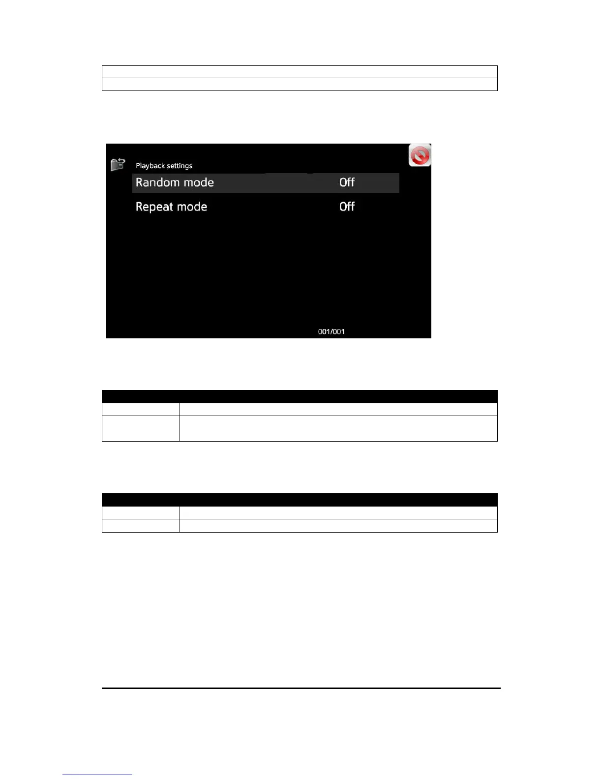 Random mode is available for CD, internal memory and USB.