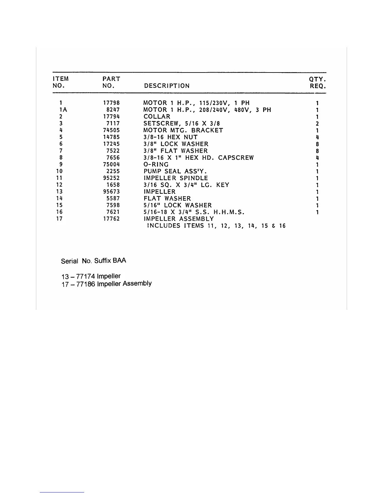 Blakeslee UC-21 - Recirculating System Parts List