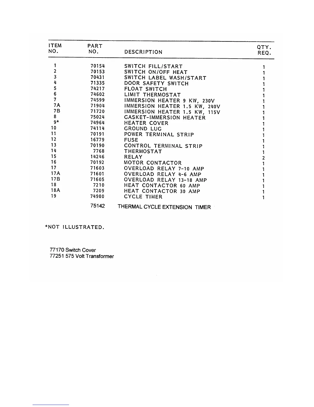 Blakeslee UC-21 - Electrical Assembly Parts List