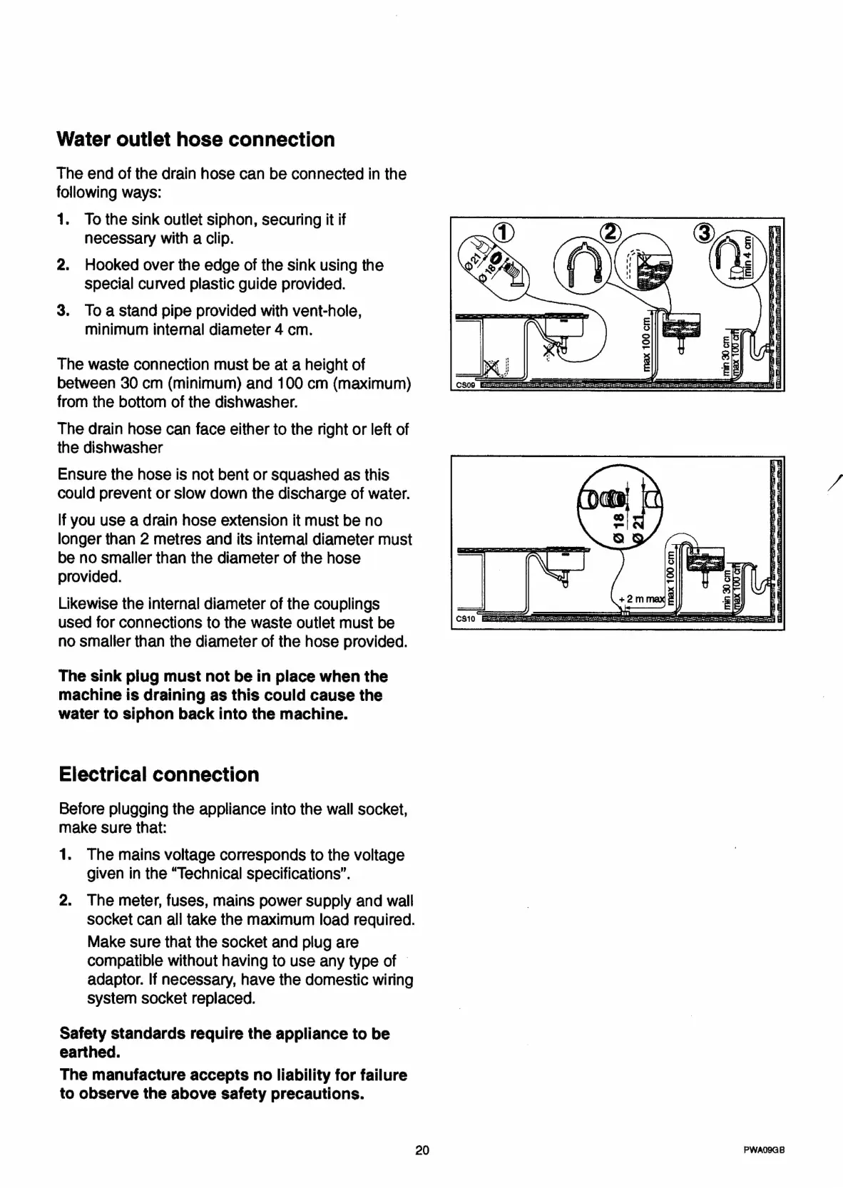 Blanco BDW 203 - Water Outlet Hose Connection; Electrical Connection