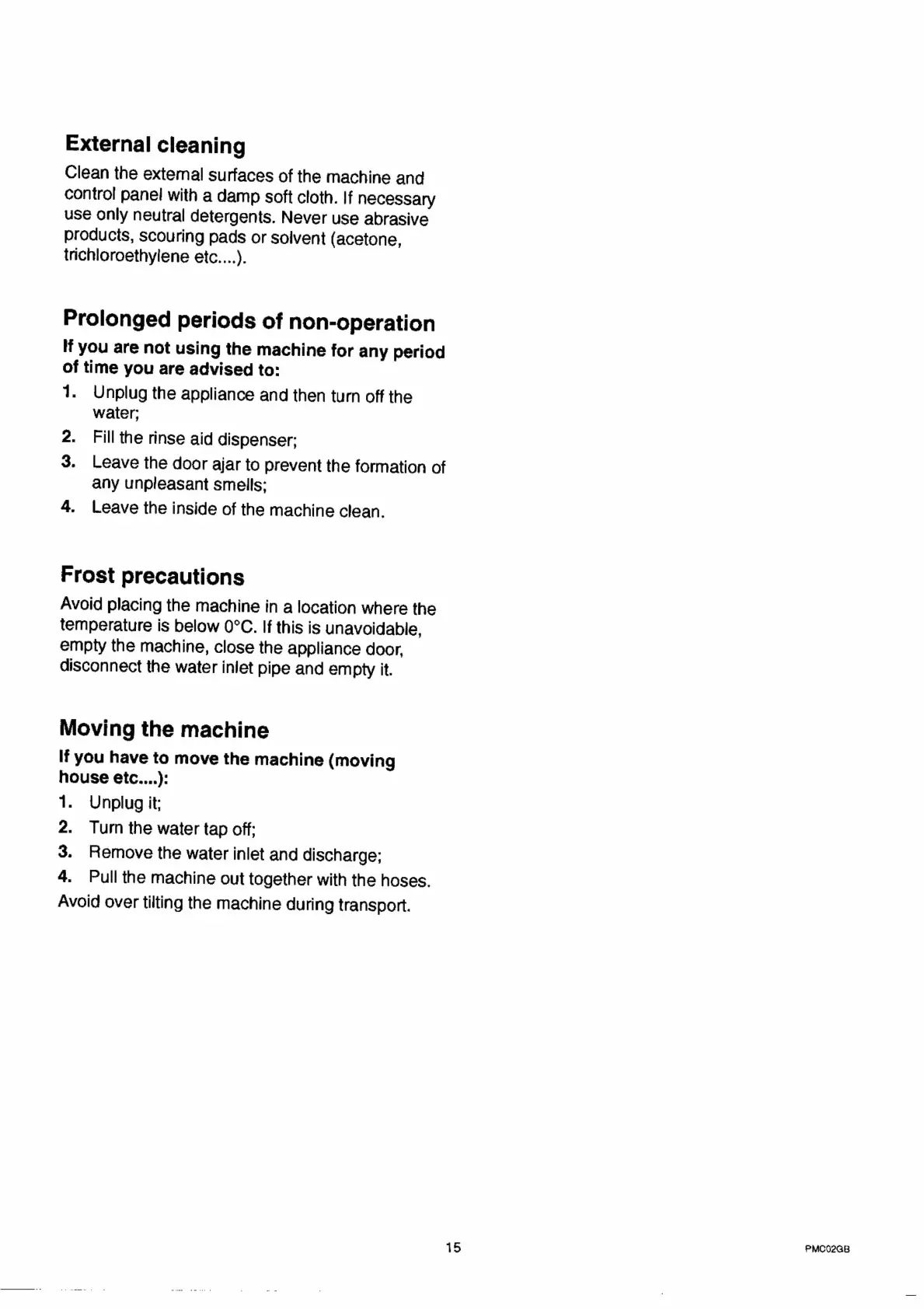 Blanco BDW 203 - Maintenance and Cleaning; Exterior Cleaning; Non-Operation Preparation; Frost Protection Measures