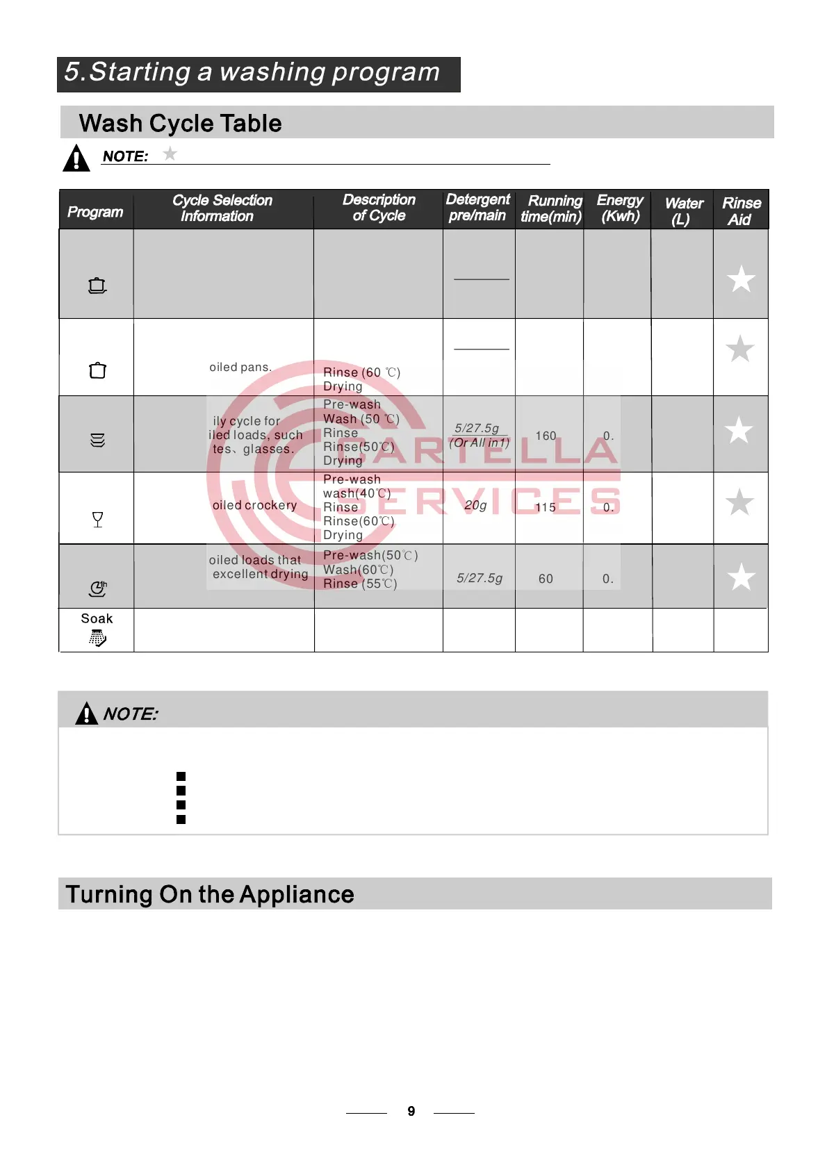 of the so cket is 10A 250VAC. Make su re that the wa ter supp ly is turned on to full pres sur e.
