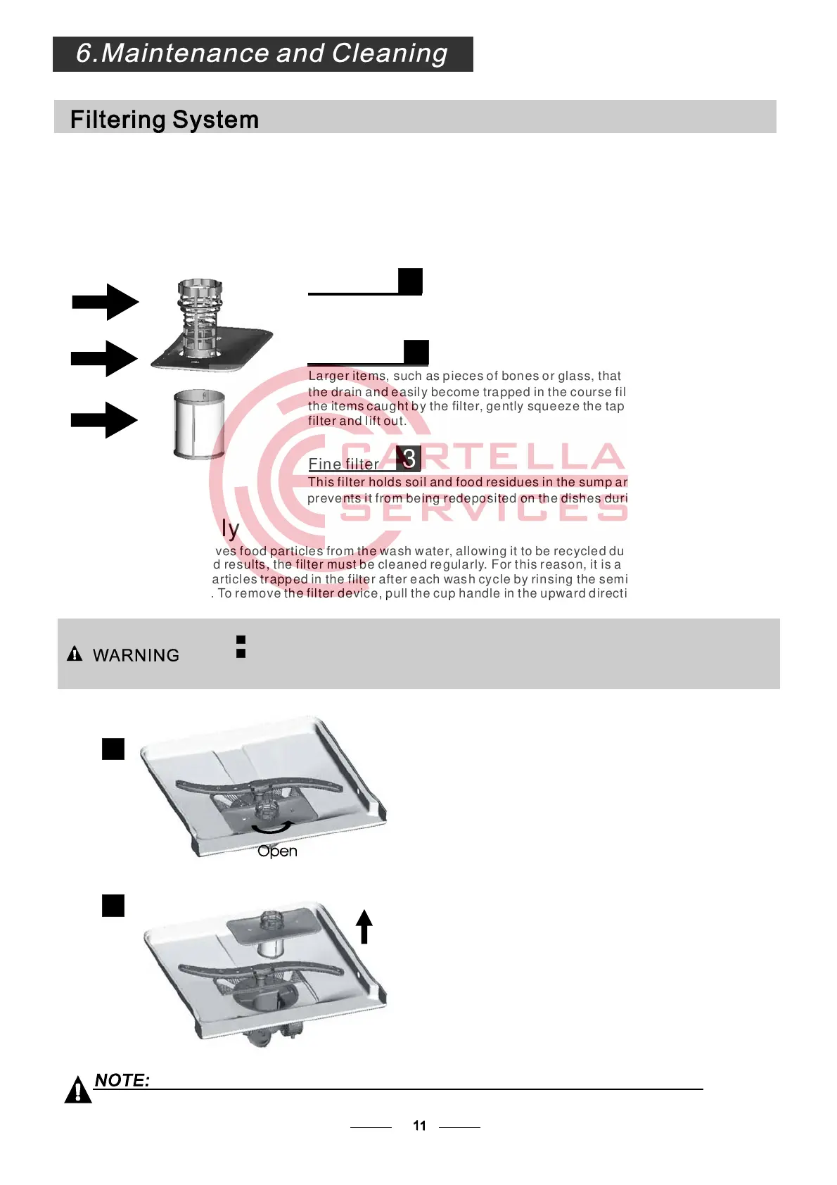 r em ove th e la rger fo od par ticl es tr app ed in the f ilte r after e ach was h cyc le by rin sing t he s em icirc ula r f il te r and