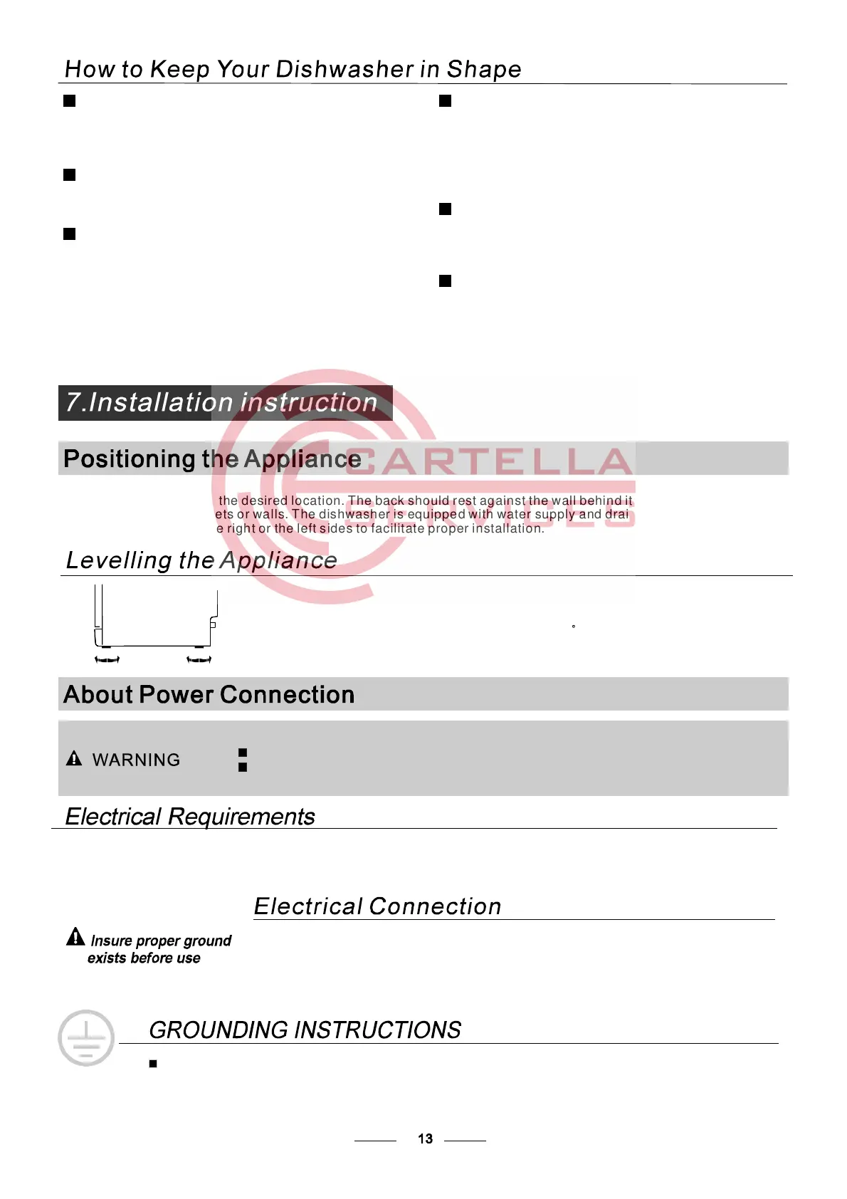 Plea se look at th e ra ting lab el t o know the rat ing v oltage a nd c onn ect t he dishwash er to the app ropr iate pow er suppl y.