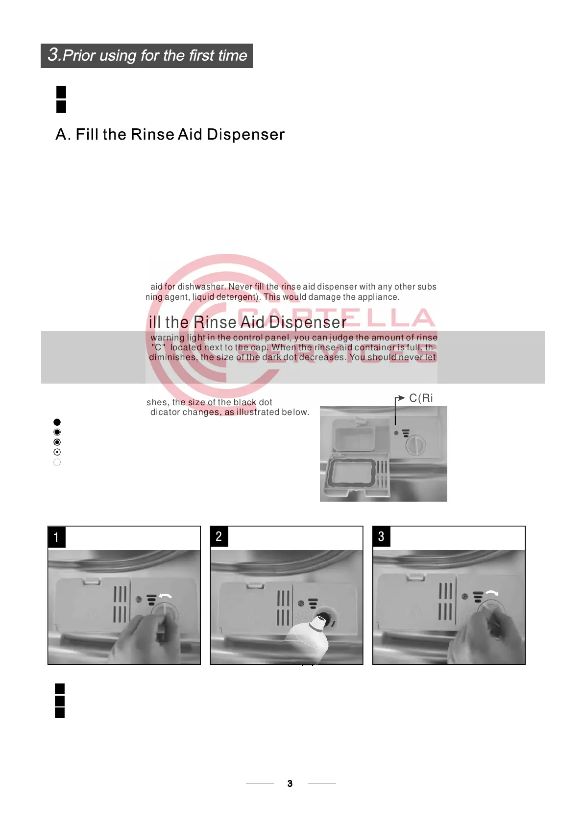 Po ur th e ri nse aid in to t he di sp en se r, bein g car eful no t to o verf ill.