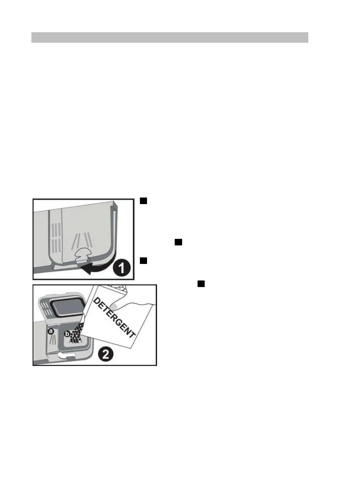 Open the detergent compartment and pour into the larger