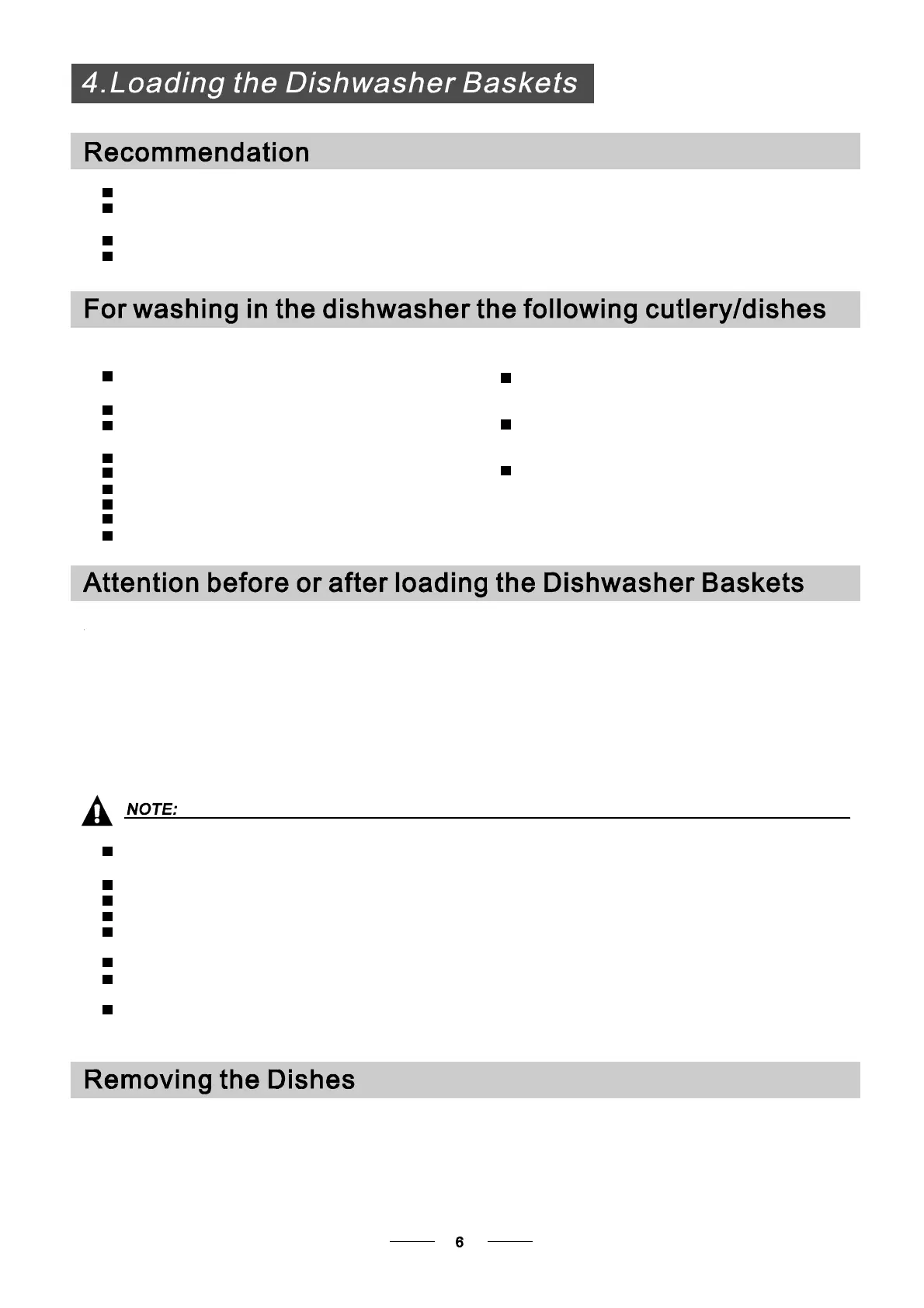 (For b est perf ormance of the di shwasher, follow the se l oading gu ide lines.