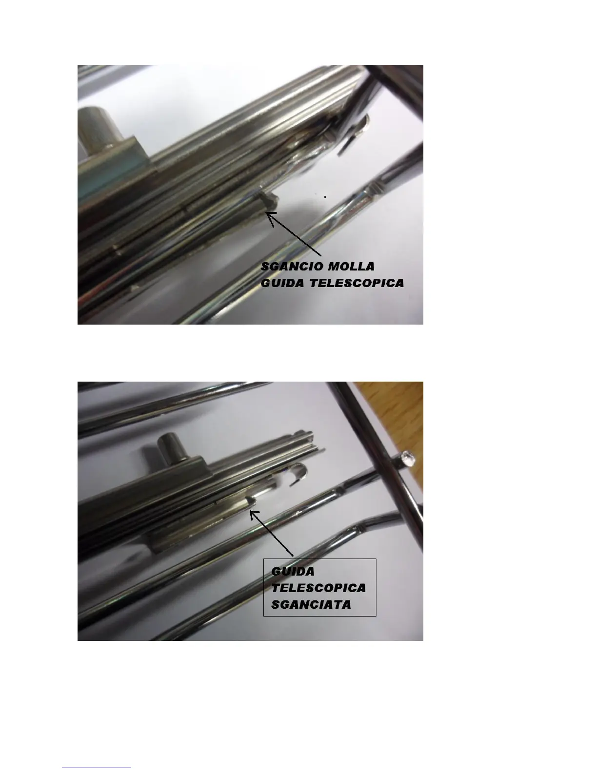 Open the tabs and pull out the telescopic rail by pulling upwards.