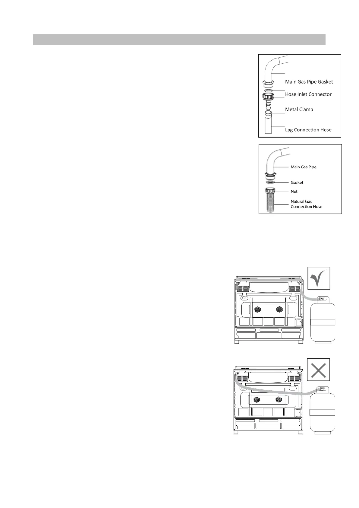 For LPG (cylinder) connection, affix a metal clamp on the hose coming