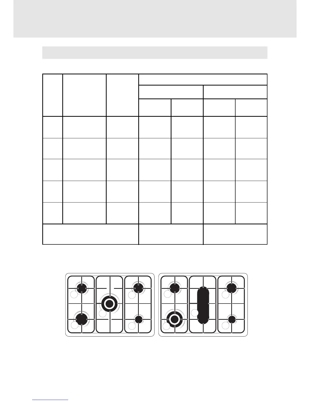 Blanco BFS95WFF - Burner and Injector Characteristic Table