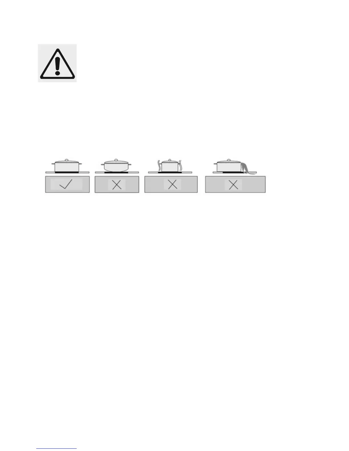 WARNING: Using cookware that is too large can cause discolouration or damage to the cooktop surface