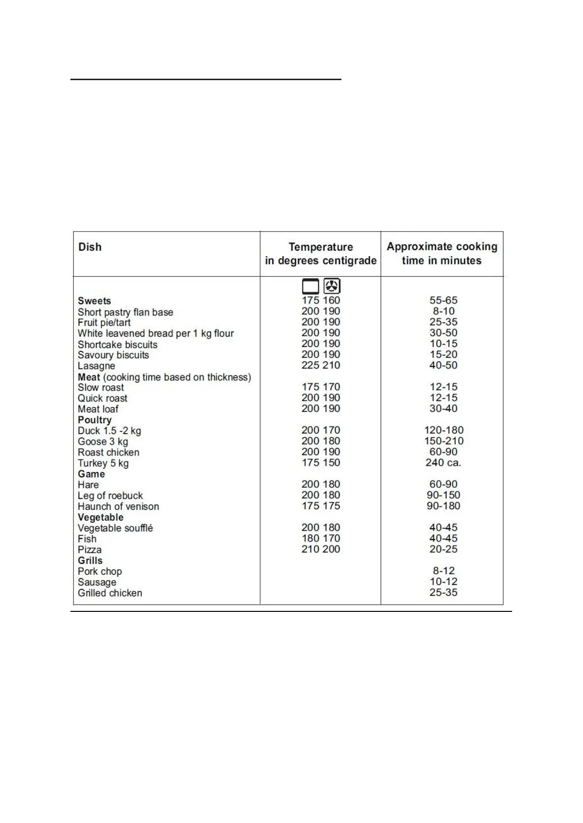 Every function has a set temperature chosen on the basis of cooking tests using frequently