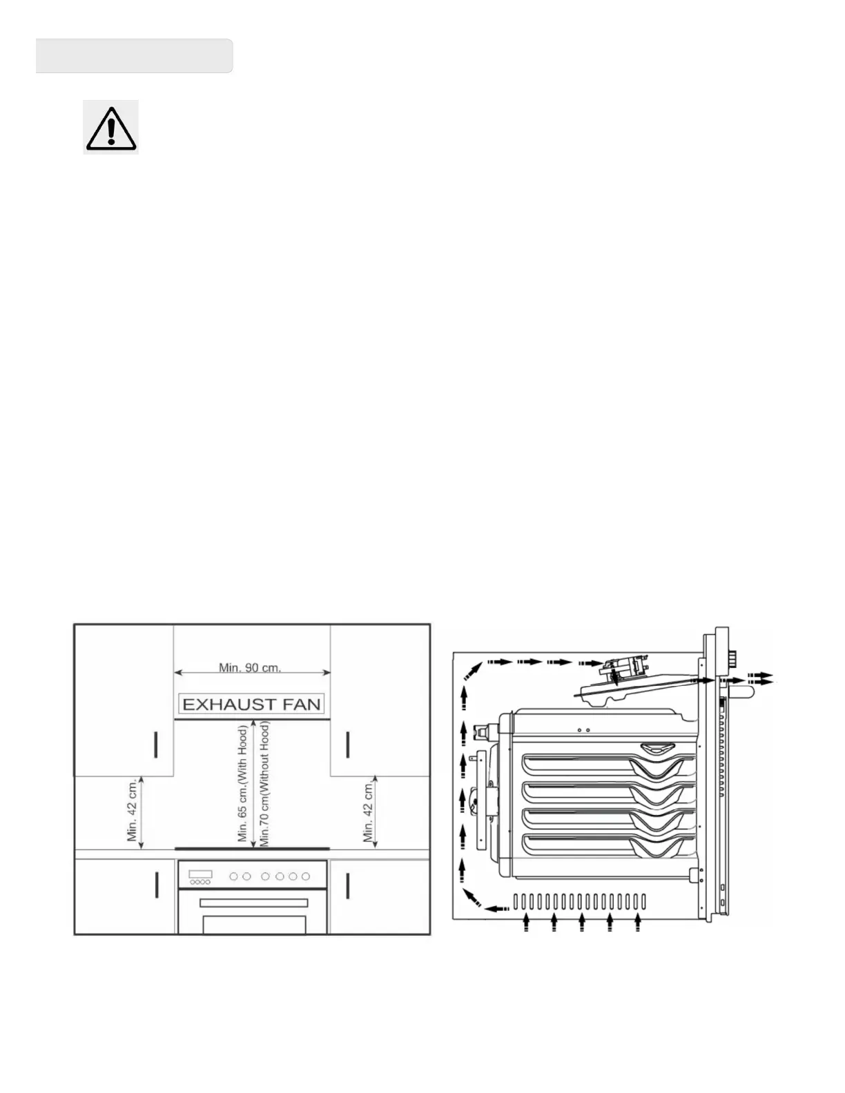 from the cooktop. If there is no rangehood the height should not be less than 70 cm. Refer to the rangehood