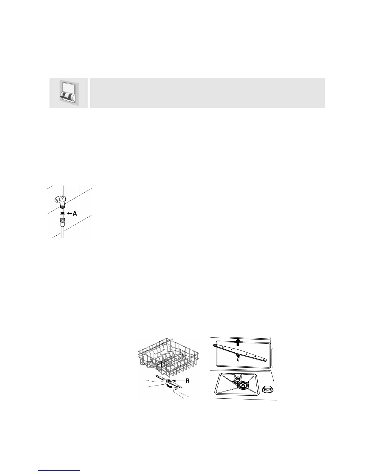 • To remove the upper spray arm, unscrew locking ring R.