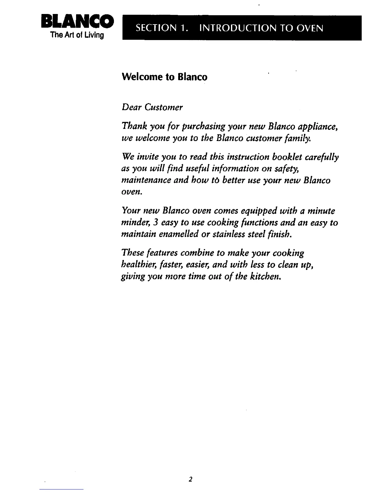 Blanco BSO 640 - Section 1. Introduction to Oven; Welcome to Blanco