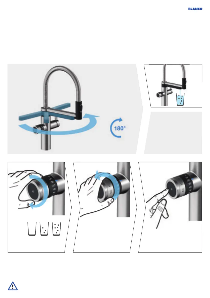 Le système se rince brièvement avec de l’eau plate si la distribution d’eau fi nement pétillante ou