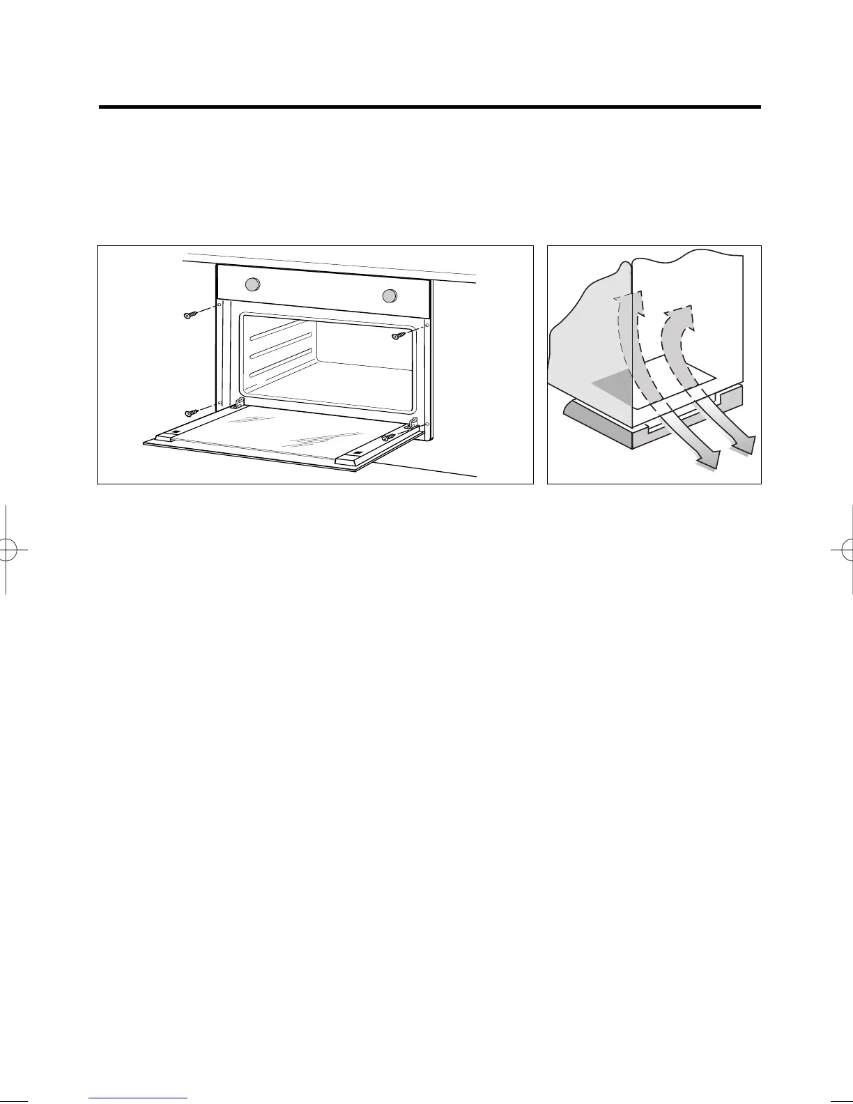 • Open the door and fix the oven with four wood screws to be screwed up through