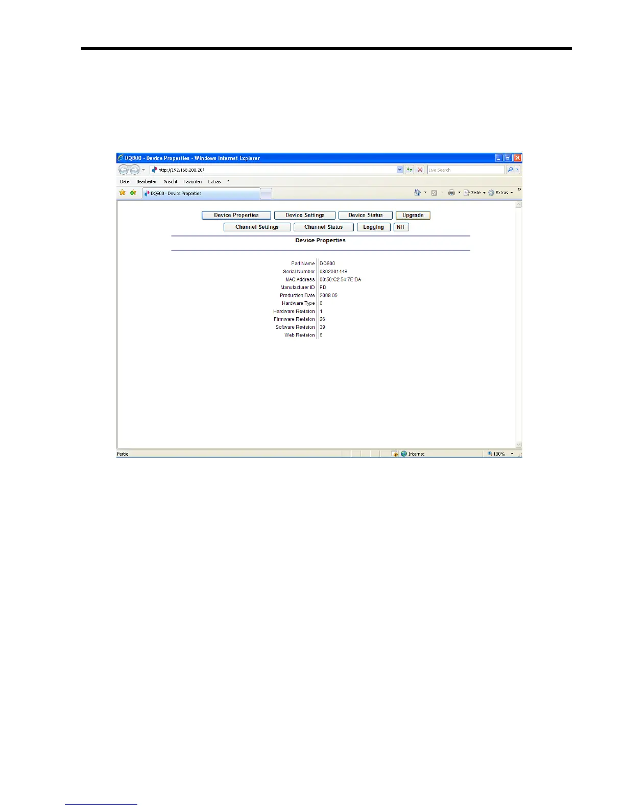 If you connect your browser with the IP-address 192.168.200.20 the following menu appears: