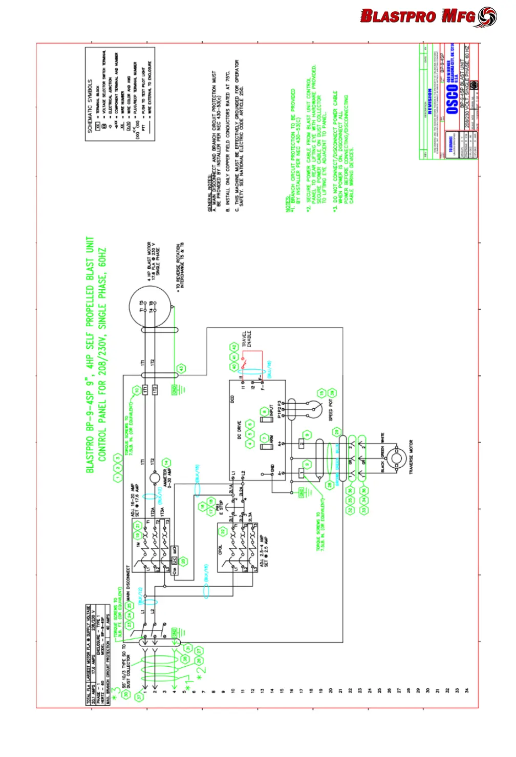 BlastPro BP-9-SP - Control Panel and Electrical Schematic