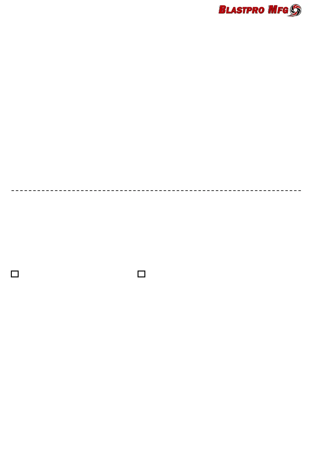 following information & mail it to BlastPro Manufacturing, Inc. 6021 Melrose Lane,
