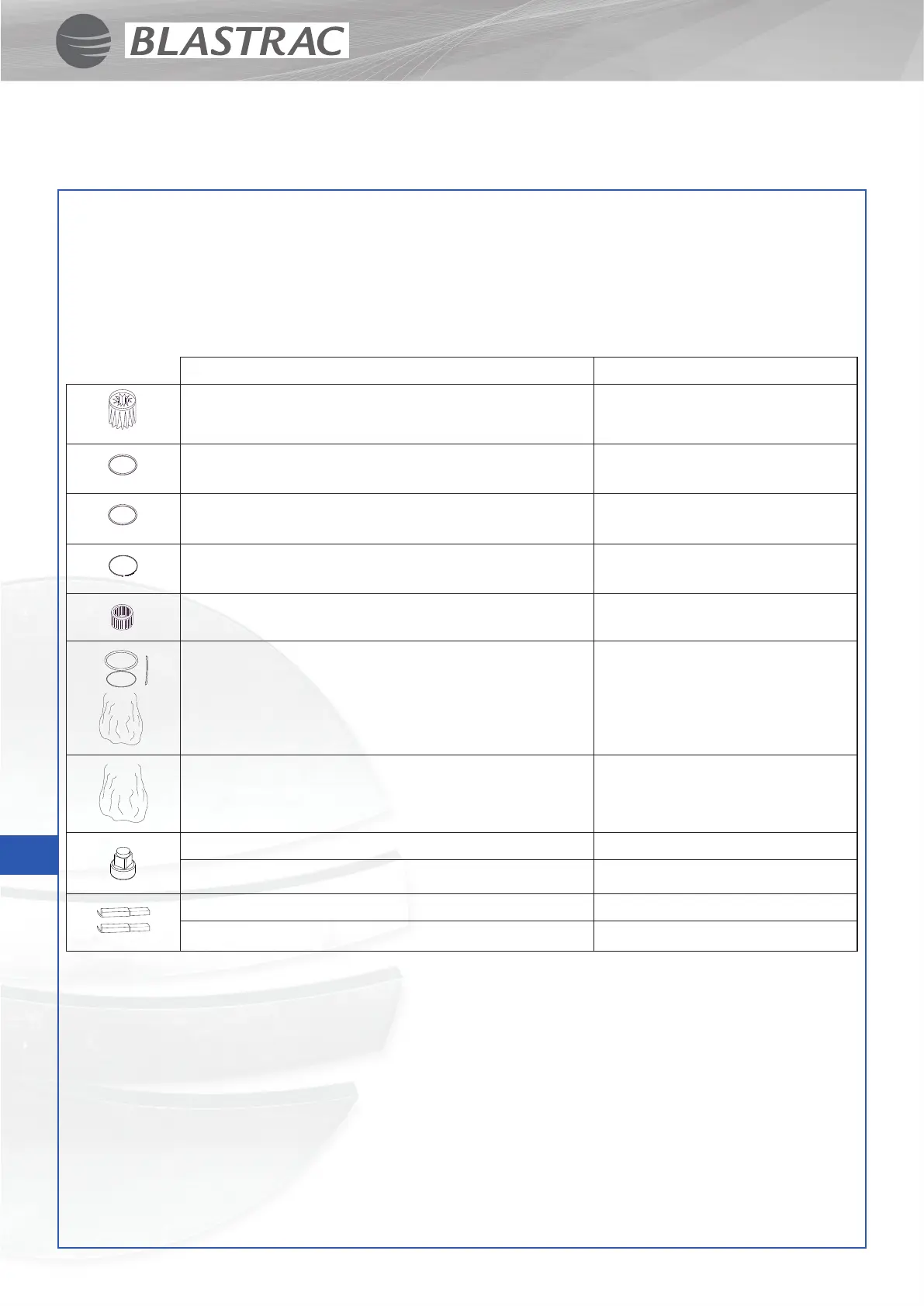 The following is a list of spare parts that should be kept ready at hand in order to speed up maintenance