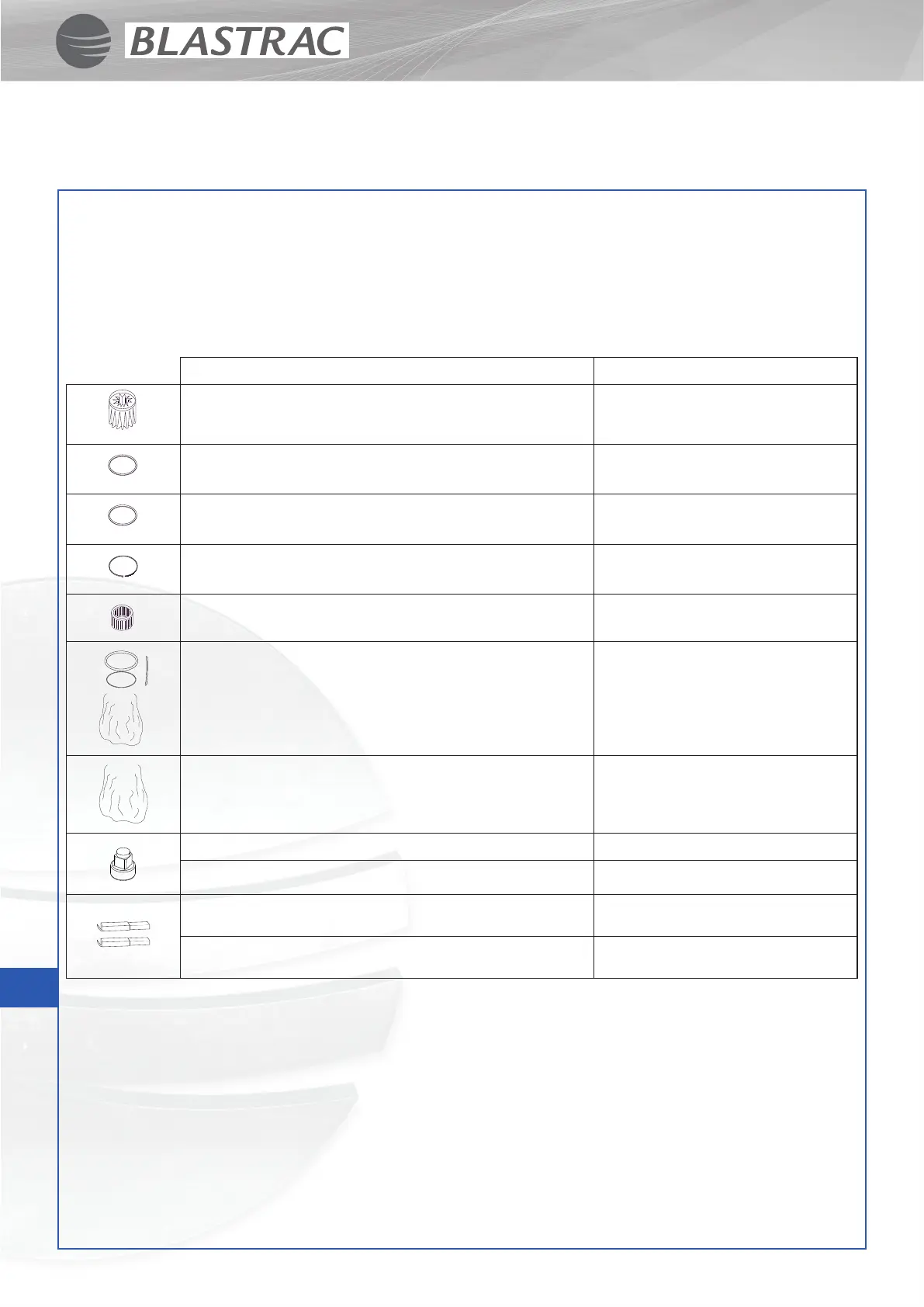 Las siguiente lista incluye las piezas de repuesto que se deberían tener a mano para ahorrar tiempo en las