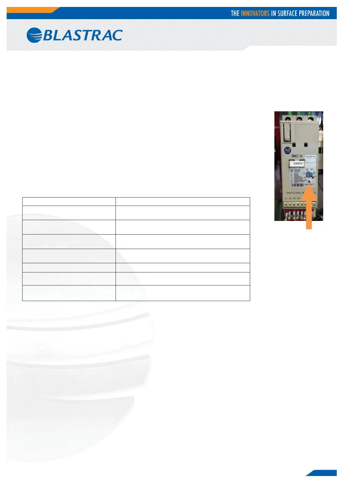 equipment. On this softstarter the information regarding the failure is shown to help resolve