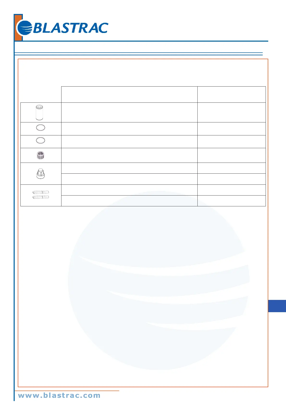 Las siguiente lista incluye los recambios que se deberían tener a mano para ahorrar tiempo en las operaciones de