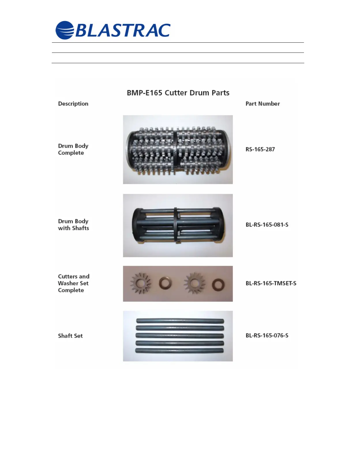 Blastrac BMP-E165 - Cutter Drum Components