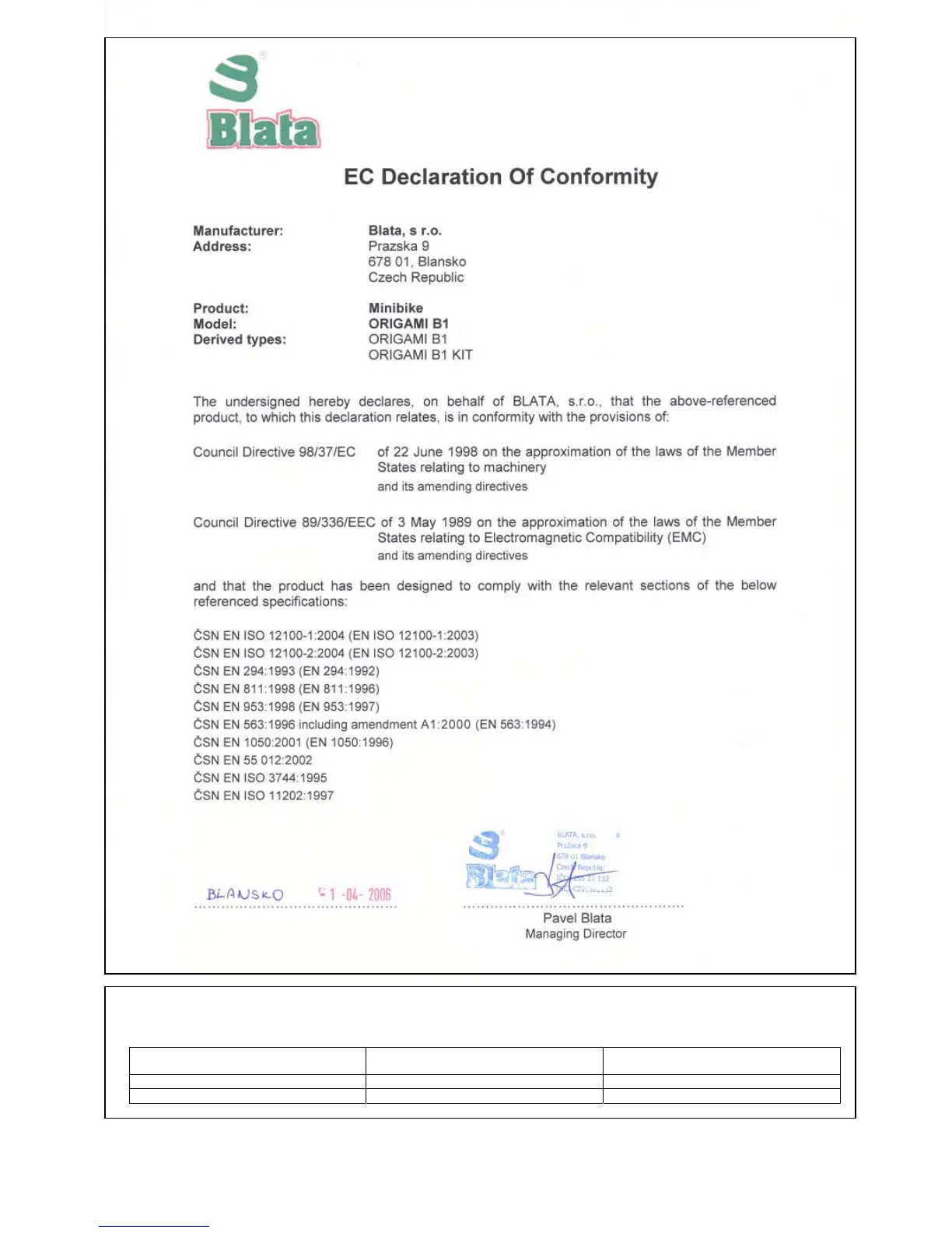 Noise emitted by machinery and equipment (Minibike BLATA ORIGAMI B1) - Measurement of emission sound pressure levels at a work