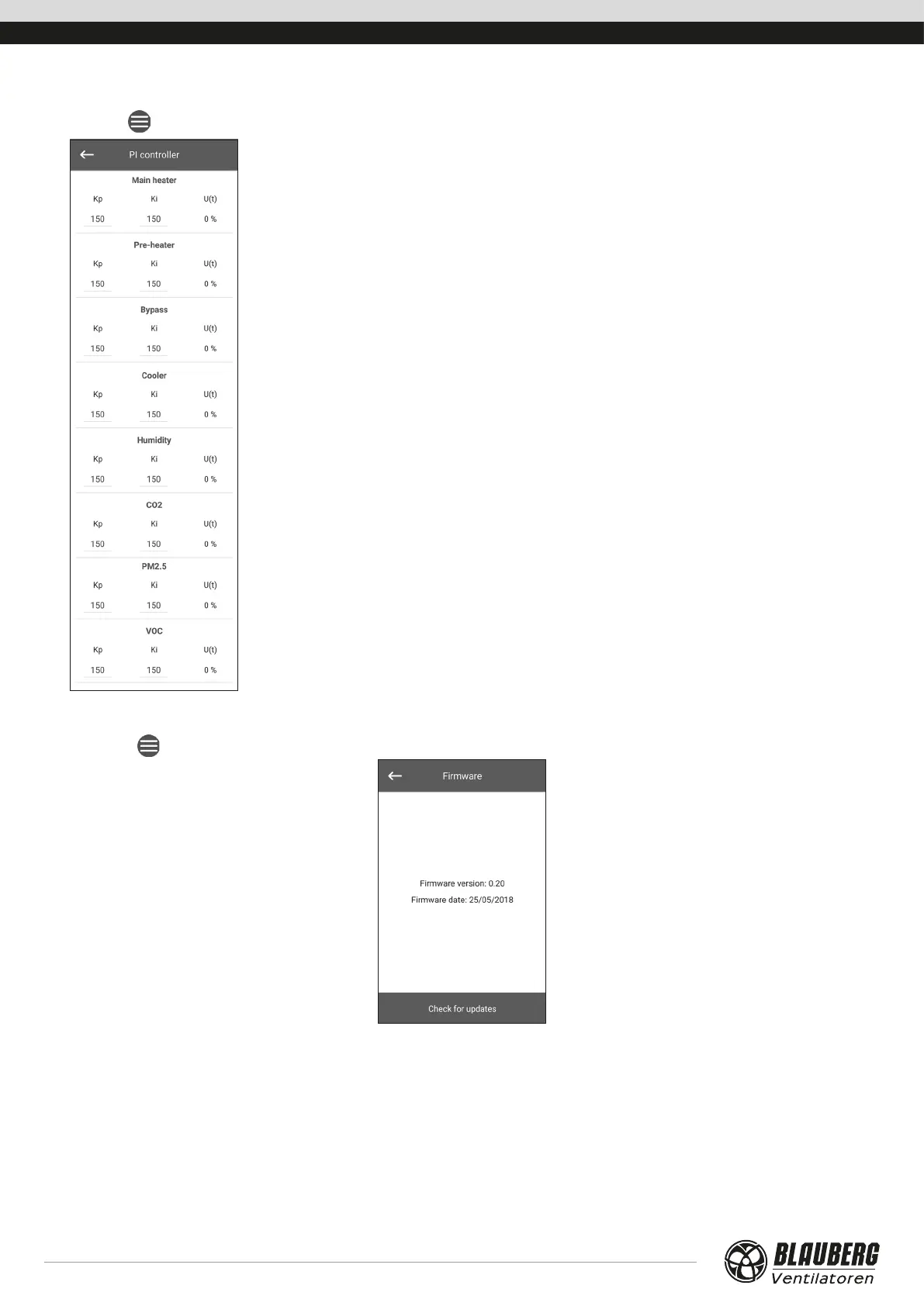 This menu contains PI controller settings. The and Ki factors affect the control signal change