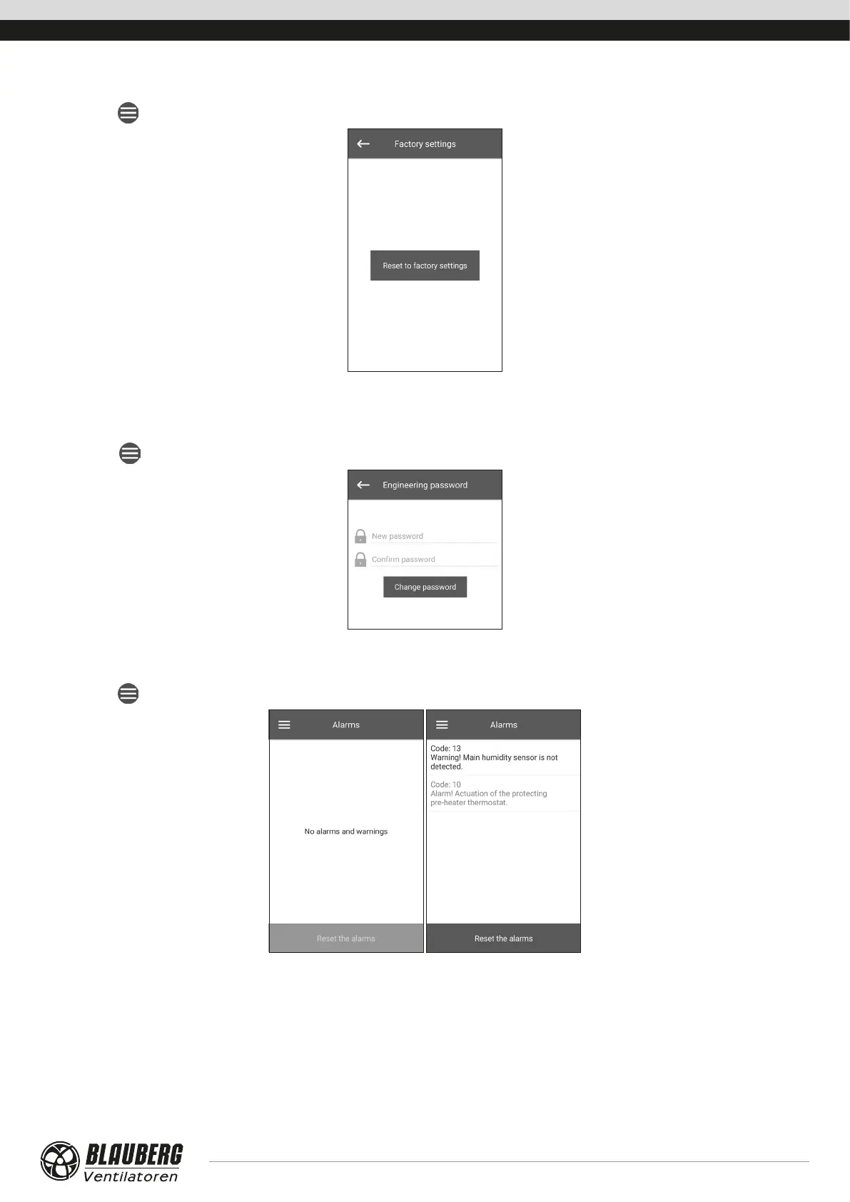 Use this menu to revert all the settings to their factory values. The reset may cause a temporary loss of connection to the device as it
