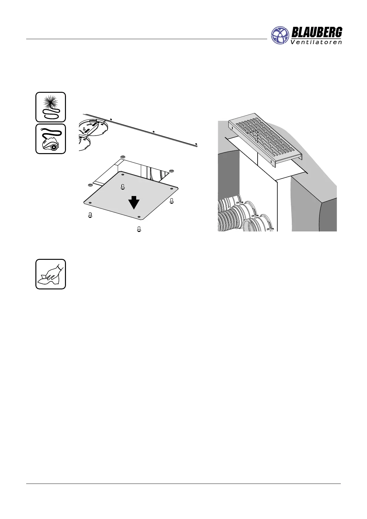 The access to the air ducts is provided through the service panel and the ventilation grille.