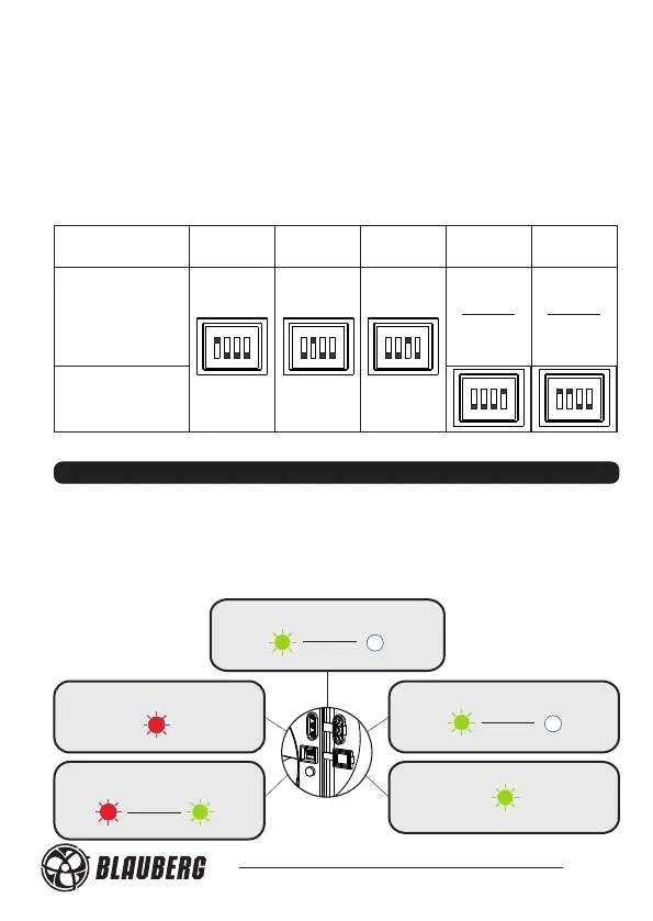 The light indicators glows as shown in fig. 27 during operation of the fan